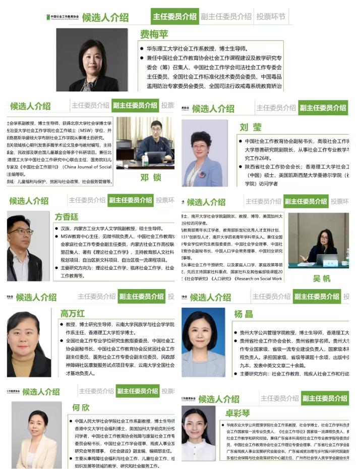 会议伊始,主持人明确了大会宗旨:依据《中国社会工作教育协会专业委员会管理办法》,专委会要有6-12月的筹备期方可通过委员大会选举正式成立。本次大会需选举产生主任委员、副主任委员、秘书长及副秘书长,并需获得参会委员三分之二以上赞成票方为有效。为召开第一届委员大会,推进专委会正式成立,近期开展了专委会委员登记工作,目前已有265位高校教师登记成为本专委会委员。