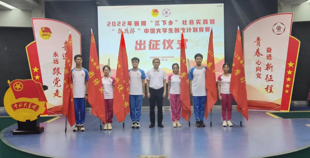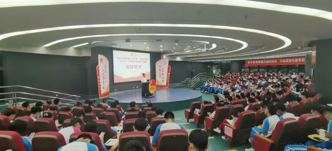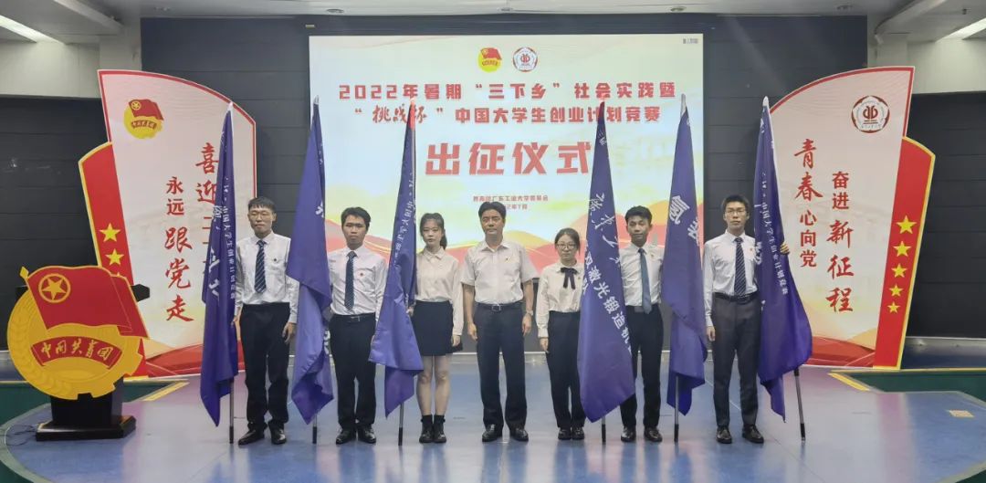7月7日,广东工业大学2022年暑期“三下乡”社会实践暨“挑战杯”中国大学生创业计划竞赛出征仪式在大学城校区圆弧报告厅举行。学校党委书记胡钦太,学校党委常委、副校长陈卓武,党委组织部、教务处、人文社科处、党委学生工作部、党委保卫部相关负责人,各学院党委副书记、团委书记,参与社会实践活动的师生代表,“挑战杯”国赛团队代表近300人参加活动。