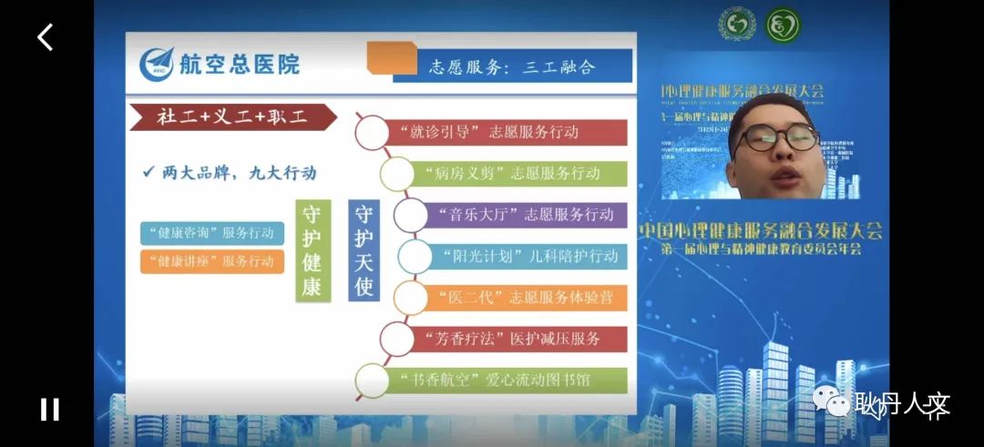 航空总医院社会工作部创始人王振兴就“医务社会工作的融合性探索”作了专题报告,他从医务社会工作发展的一般趋势,航空总医院医务社会工作“嵌入—介入—融入”的工作思路,志愿服务在社工、义工、职工的“三工”融合及其服务品牌;健康社区的营造;临床社工的融合,包括在产科、肿瘤外科、神经内科、神经外科、乳腺外科,及脑卒中病房全程推进医务社工服务实践的探索。