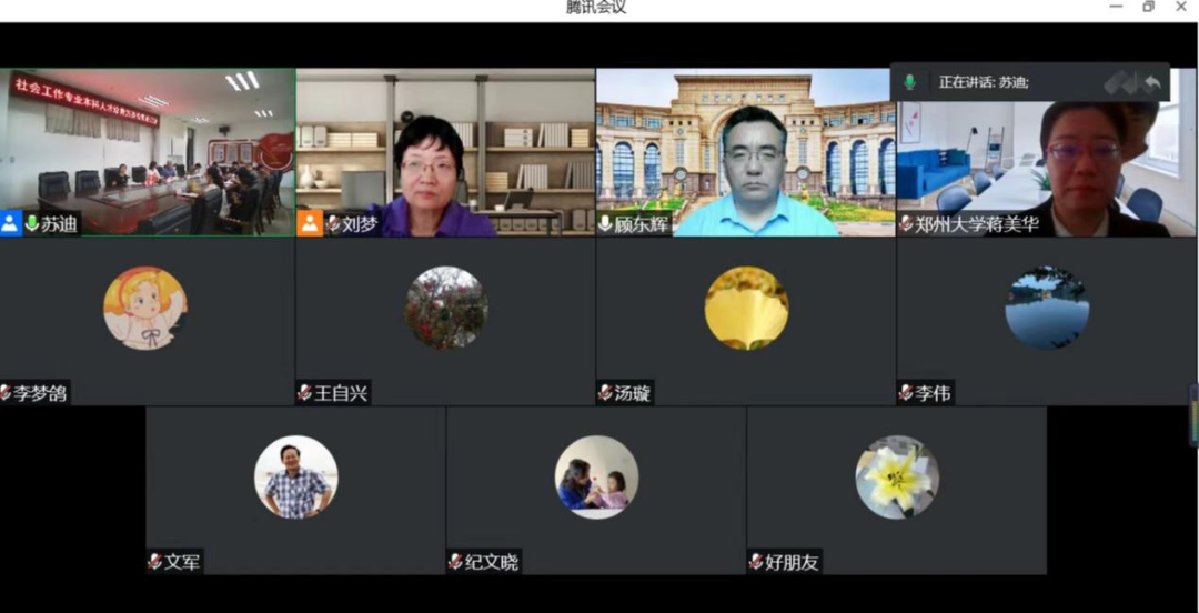受邀参会的嘉宾有:复旦大学文科科研处处长、教育部高等学校社会学类教学指导委员会副主任委员顾东辉教授,华东师范大学社会发展学院院长、教育部高等学校社会学类教学指导委员会副主任委员文军教授,中央民族大学民族学与社会学学院教授、教育部高等学校社会学类教学指导委员会委员郭伟和教授,浙江师范大学法政学院院长、教育部高等学校社会学类教学指导委员会委员刘梦教授,郑州大学政治与公共管理学院社会工作系主任、社会工作国家级一流本科专业负责人、社会工作硕士教育中心负责人蒋美华教授,郑州市民政局儿童福利与慈善事业促进处处长王自兴,河南师范大学社会事业学院副教授、河南省新乡市牧恩社会工作服务中心理事长纪文晓,馨家苑社区服务中心副理事长汤璇,以及19级社会工作专业学生代表李梦鸽。文法学院党委书记牛娟、教务处副处长代莉、文法学院副院长李伟以及社会学系全体教师参加会议。会议由李伟主持。