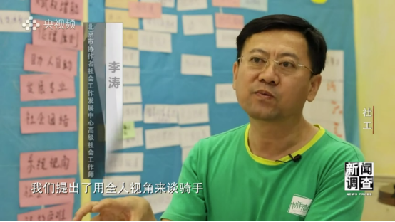 面对骑手这一新兴职业,李涛谈到:社会工作者要用全人视角去看待骑手,他们不仅仅是一个配送员,也是家庭的一份子,社区当中的人,群体当中的人,社会当中的人。