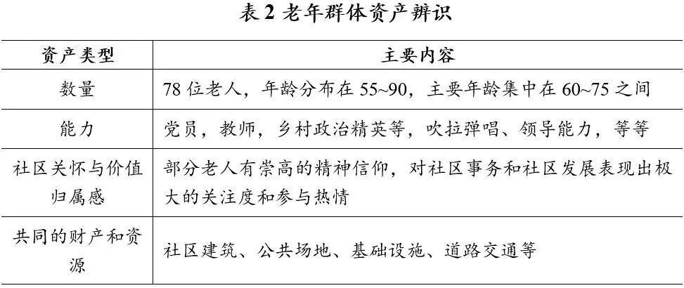 资产为本的社区发展模式的目标在于尝试通过建立或重建社区中的组织、团体,将社区发展及经济发展两者联系起来,在创造经济机会的同时,关注社区内生动力的发展。社区中的组织、团体是农村社区发展的平台。通过社区组织的建立,可以让社区居民更深入地参与社区建设,并在这个过程中掌握更多的资源、信息和技术,学会如何去提出诉求以及将社区发展的各种建议通过组织反映出来,从而达到“增权”的目的,为整个新型农村社区的发育提供养料。在实践过程中,资产为本的社区发展模式较为强调社区的资产辨识与组织培育,即通过盘点社区资产建立合适的社区自组织,动员居民参与组织,增强组织归属感,提升个体能力,形成组织的凝聚力和社区治理能力。与此同时,社区组织在发展过程中不仅要提升组织参与者的能力,更需要着眼于组织的整体能力建设,联动社区外部支持力量,推动社区组织日趋成熟壮大。鉴于此,结合国内外的实证经验和本土情况,本文将资产为本的老年自组织的发展模式分为3个步骤:第一步辨识老年群体资产,组建自组织;第二步唤醒组织主体意识,培育组织发展能力;第三步构建资产关系,联结组织与社区发展。具体实践过程如下: