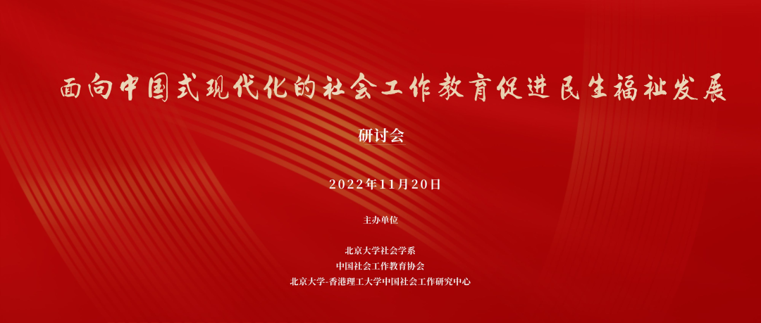 党的二十大明确提出中国式现代化的命题和任务,为我国全面建设社会主义现代化国家指明了方向。《二十大报告》指出:中国式现代化,是中国共产党领导的社会主义现代化,既有各国现代化的共同特征,更有基于自己国情的中国特色。《报告》指出要增进民生福祉,提高人民生活品质,坚持在发展中保障和改善民生,采取更多惠民生、暖民心举措,着力解决好人民群众急难愁盼问题,健全基本公共服务体系,提高公共服务水平,增强均衡性和可及性,扎实推进共同富裕。这就对我国社会福利事业和社会工作事业的发展,提出了新的要求。为了更好地学习、理解和呼应党的二十大战略部署,发挥社会工作专业优势,助力增进民生福祉,提高人民生活品质,北京大学社会学系、中国社会工作教育协会、北京大学-香港理工大学中国社会工作研究中心召开“面向中国式现代化的社会工作教育促进民生福祉发展研讨会”,邀请社会工作、社会政策、社会学学者,交流研讨相关议题,提高社会工作教育和实务界在参与推进中国式现代化中的自觉性,促进我国社会工作教育与实践的发展。