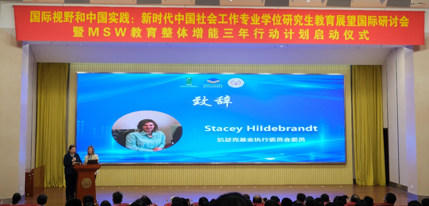 Stacey Hildebrandt女士提到凯瑟克基金在过去的三十多年一直支持中国社会工作教育的发展,希望本次MSW教育整体增能三年计划能够通过培养社会工作教育标准的研究、人才培养、提升社会工作能力建设,更有效地服务社会大众。