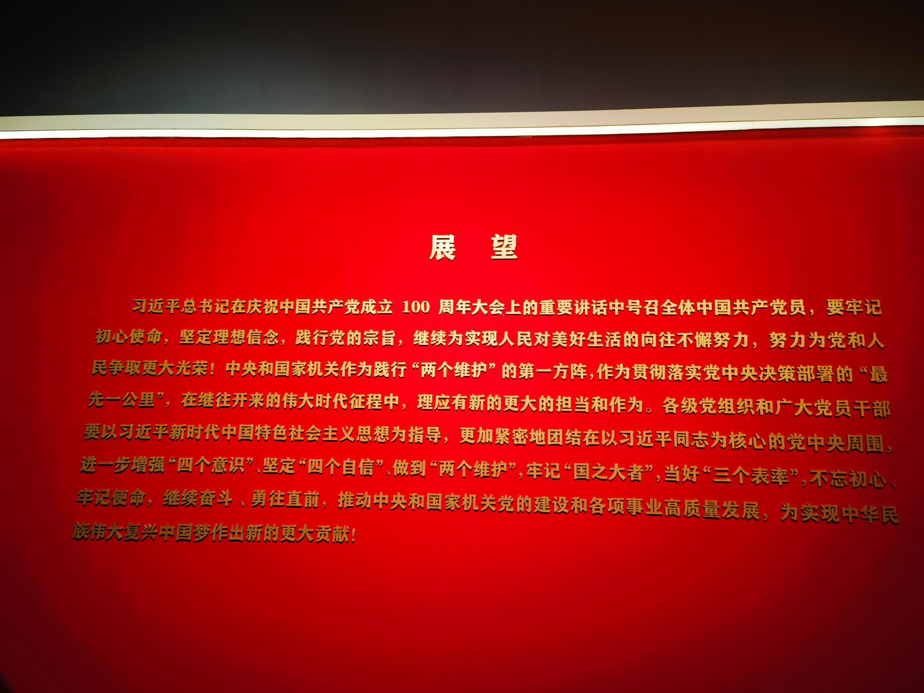 本次展览以习近平总书记在中央和国家机关党的建设工作会议上的讲话精神为主线,辅以图片、视频等呈现方式,将过往取得的党建成就生动地展现在大家眼前。