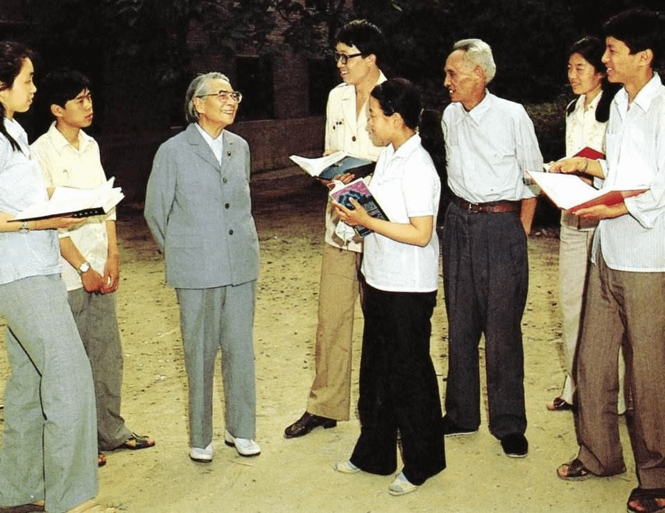 1990 年代雷洁琼教授和北大学生在一起